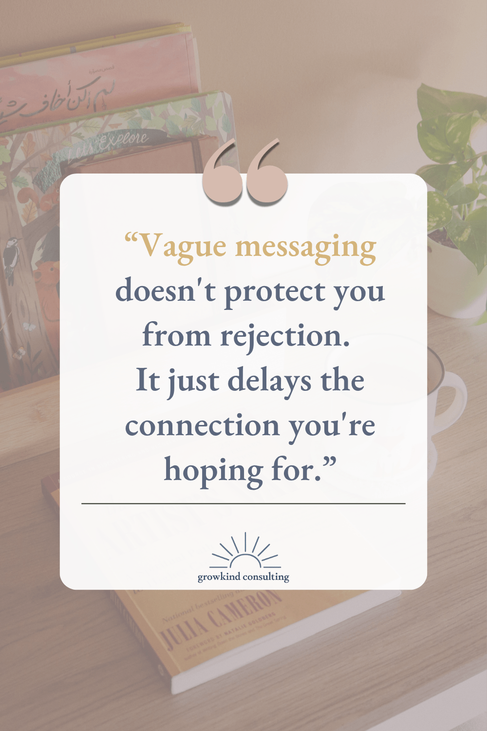 But remember: when you speak to everyone, you speak to no one. Vague messaging doesn't protect you from rejection. It just delays the connection you're hoping for.